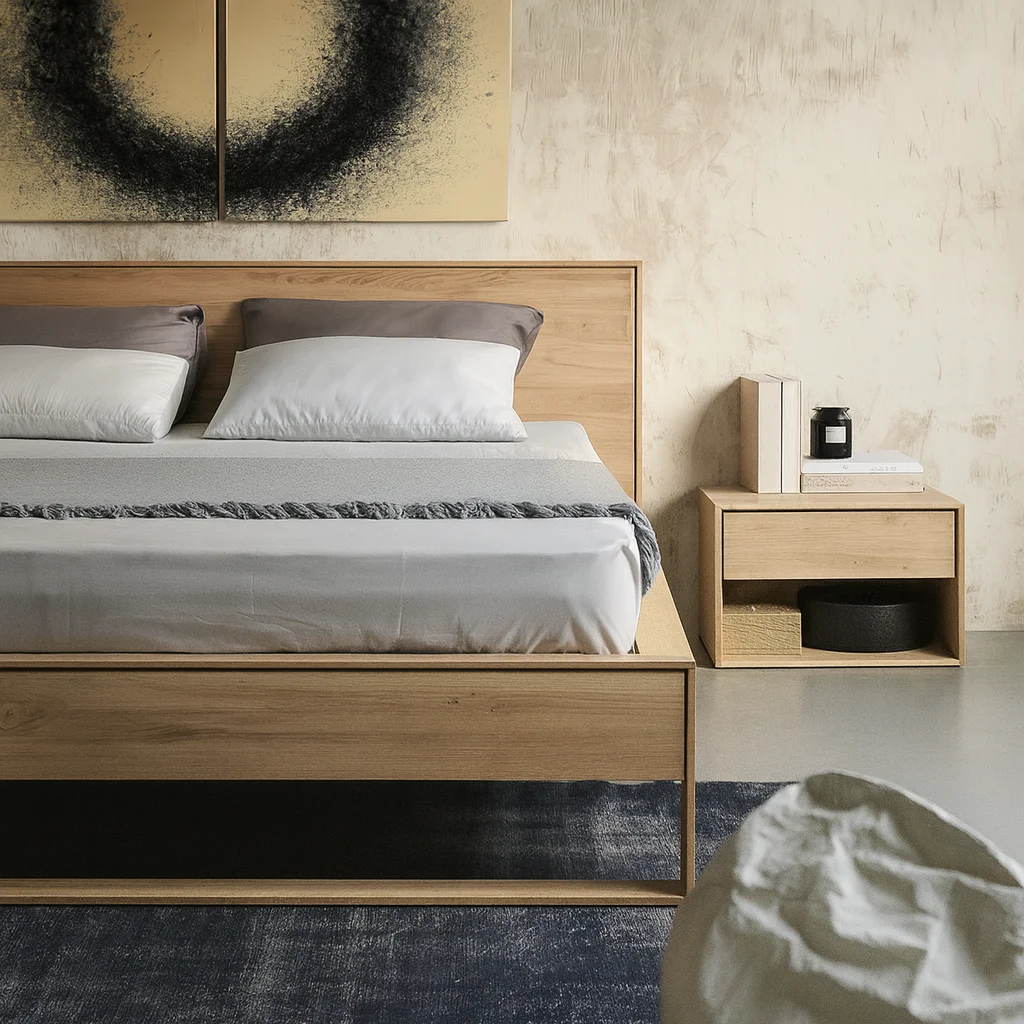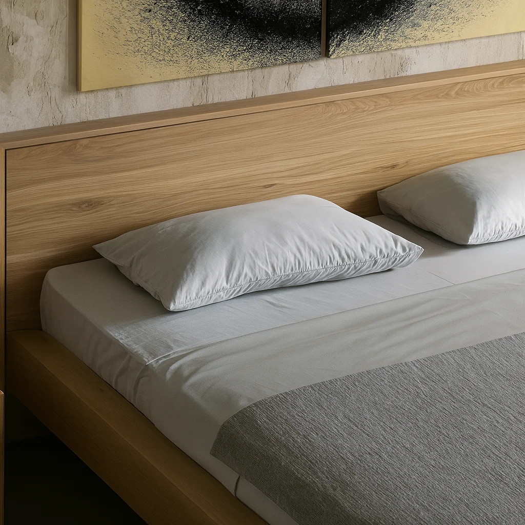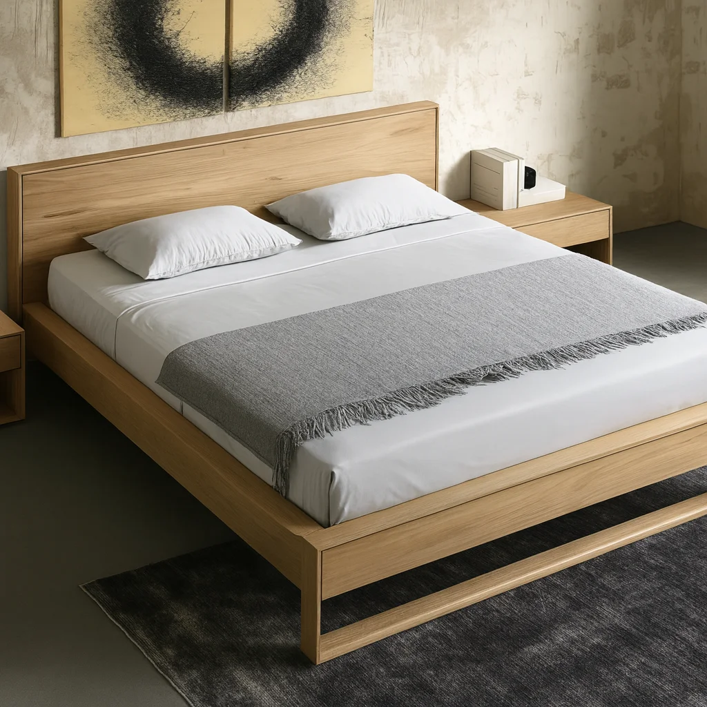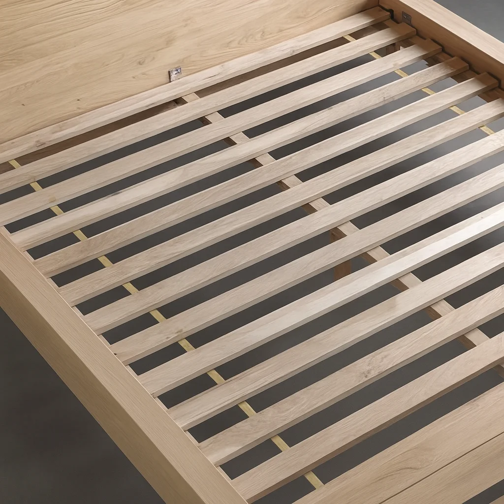 Изготавливается из прочного европейского ясеня, известного своей долговечностью и красивой текстурой. Изголовье выполнено по технологии многослойной обработки массива, что придаёт конструкции дополнительную прочность. Основание собрано из ясеневых ламелей, обеспечивающих надёжную поддержку матраса. В качестве покрытия используется экологичное масло-воск для древесины, которое подчеркивает натуральный оттенок дерева и защищает его поверхность от износа.