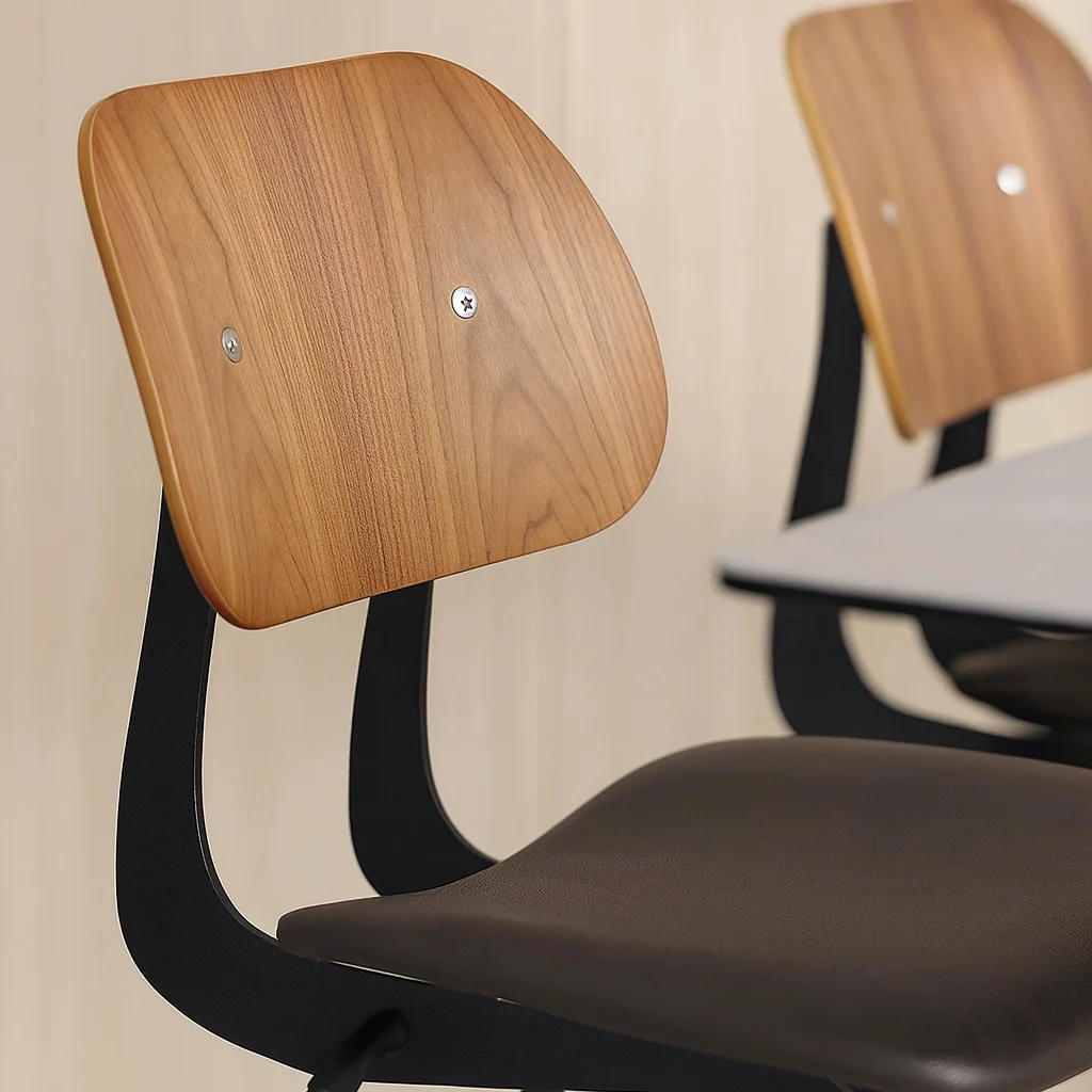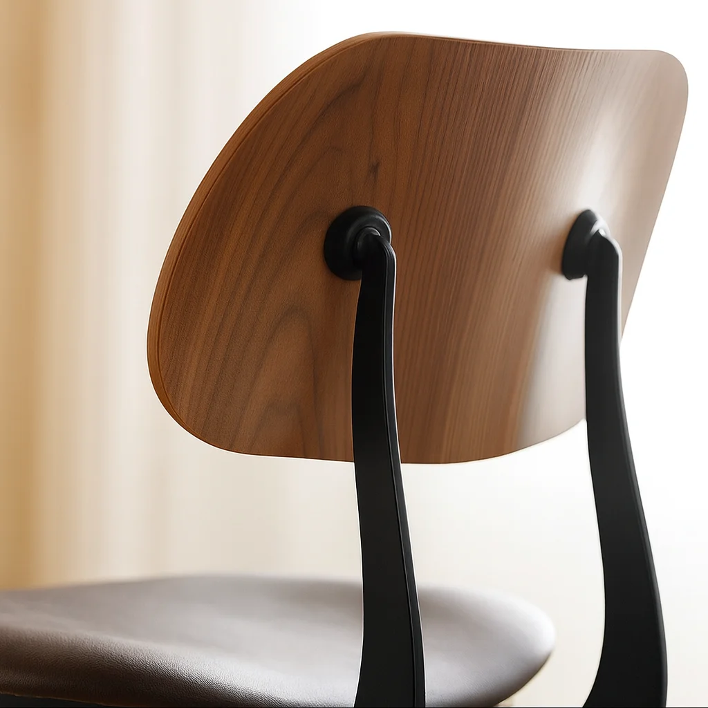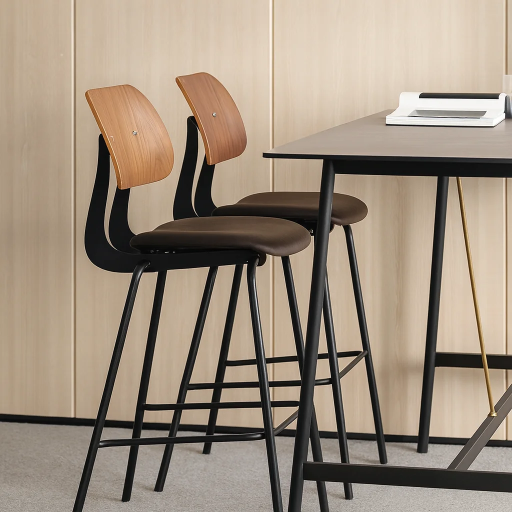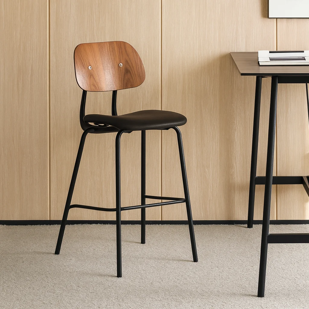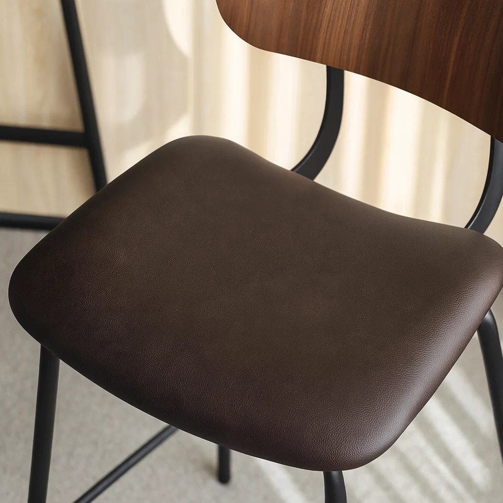 Элегантный барный стул с высоким изогнутым спинкой и современным дизайном. Сиденье выполнено из качественного PU с мягким наполнением из поролона и синтепона, что обеспечивает комфорт при длительном использовании. Спинка из многослойной фанеры Е0 отделана натуральным шпоном черного ореха, придавая изделию благородный вид. Прочный металлический каркас гарантирует долговечность и надежность конструкции.