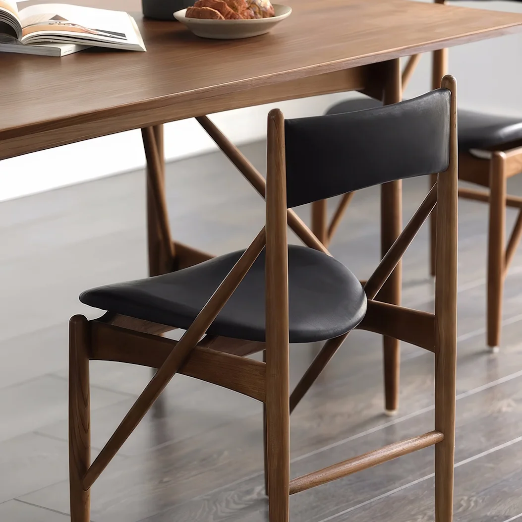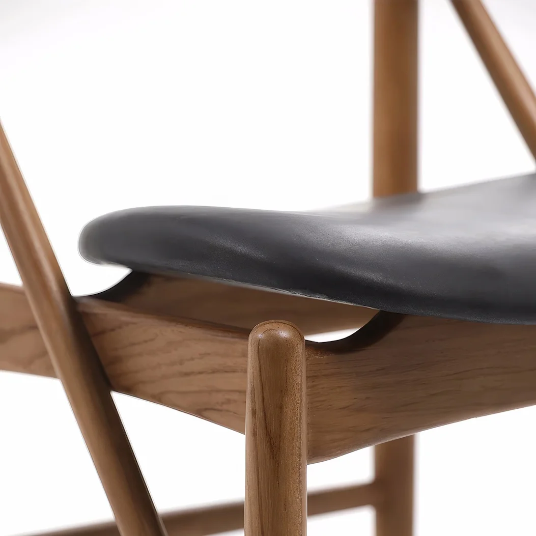 Простота в духе дизайна Вдохновлен американским стилем Шейкер XIX века. Чистые формы, винтажное и теплое исполнение, легко сочетается с различными пространствами. Драгоценное массивное дерево индийского палисандра Древесина плотная и маслянистая, с красивой текстурой. Обладает высокой несущей способностью, устойчива к деформации, стойкая к коррозии и износу. Со временем приобретает все более благородный блеск, будет сопровождать вас долгие годы. Прочная поддержка, максимальный комфорт Широкое сиденье и наклон спинки соответствуют принципам эргономики. Посадка расслабленная, легко сохранять элегантную осанку. Обтянуто кожей первого слоя с наполнителем из поролона. Плотная и мягкая кожа с гладкой текстурой на ощупь. Легко задвигается под стол, максимальное использование пространства! Оставляет достаточно места для передвижения, значительно повышая чистоту и аккуратность пространства.