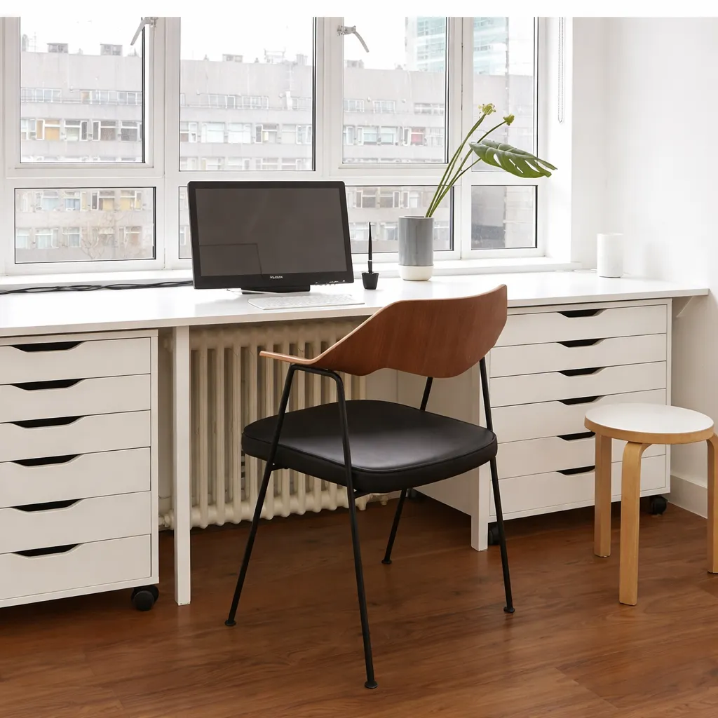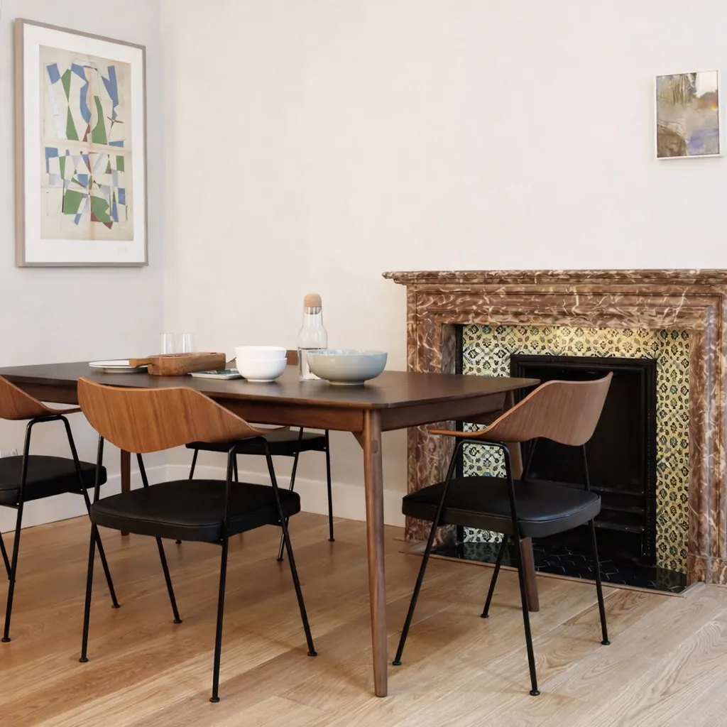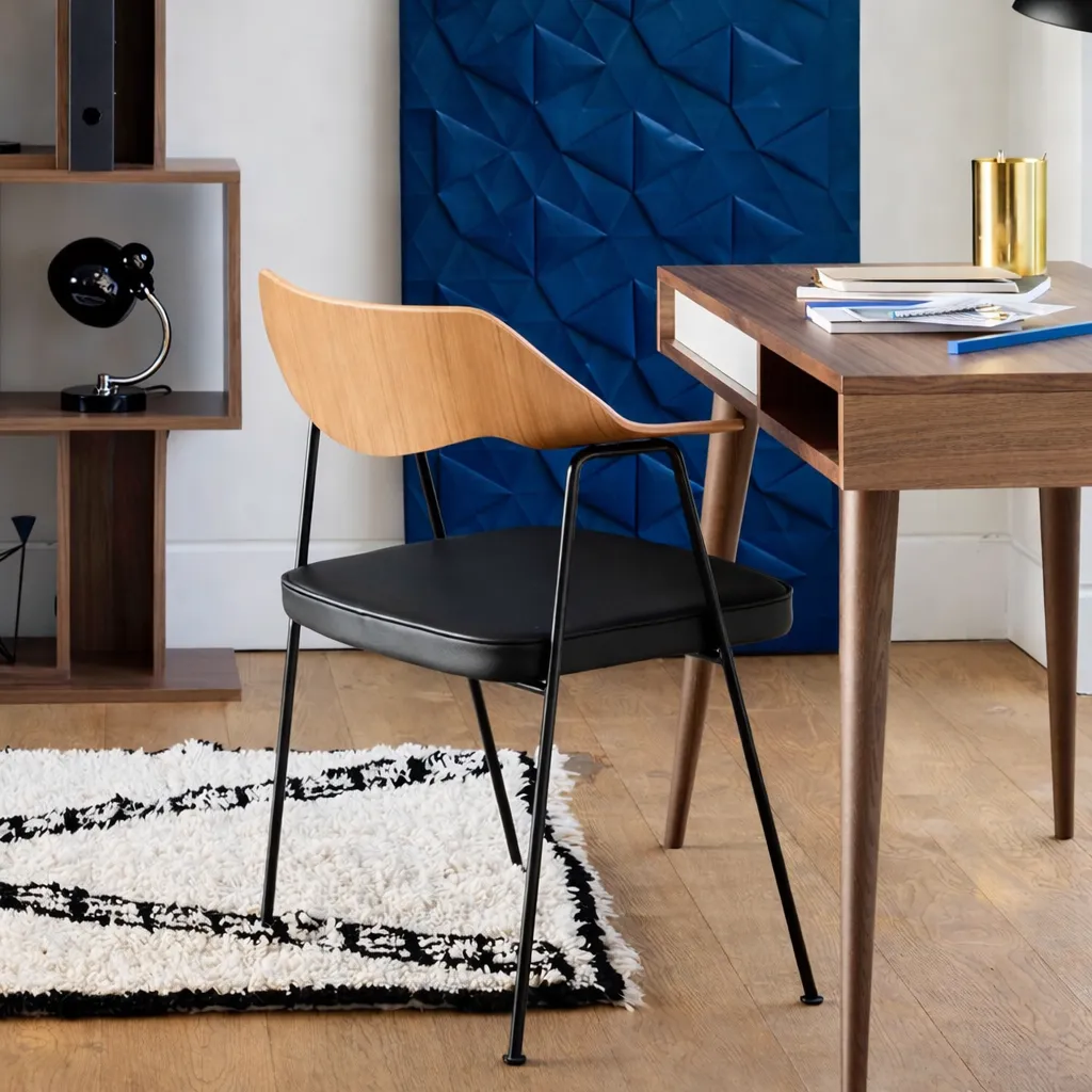 Современный обеденный стул с подлокотниками, выполненный в стиле североевропейского минимализма. Прочный каркас из дерева в сочетании с мягким кожаным сиденьем обеспечивает удобство и долговечность. Лаконичный дизайн и использование натуральных материалов делают его универсальным решением для столовой или гостиной. Две модели имеют разный цвет спинки, а также металлической конструкции стула.