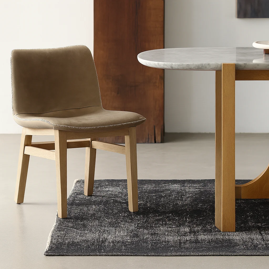 Cочетающий натуральную кожу и дерево в минималистичном исполнении от дизайнера FRANK LEFEBVRE . Сиденье выполнено из импортной лицевой кожи с мягкой набивкой из поролона для комфорта, а каркас — из многослойной фанеры класса Е0. Основание изготовлено из прочного американского массива ясеня, обеспечивающего устойчивость и долговечность. Экологичное покрытие NC-лаком защищает поверхность и сохраняет натуральную текстуру материалов.