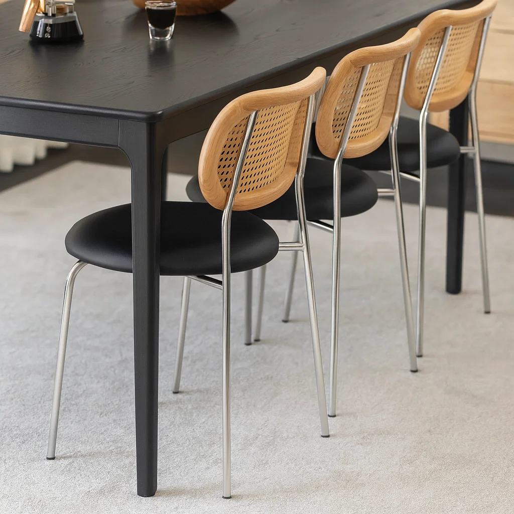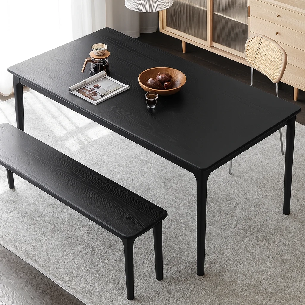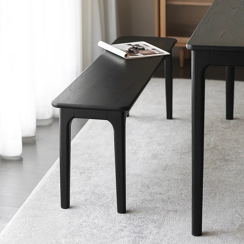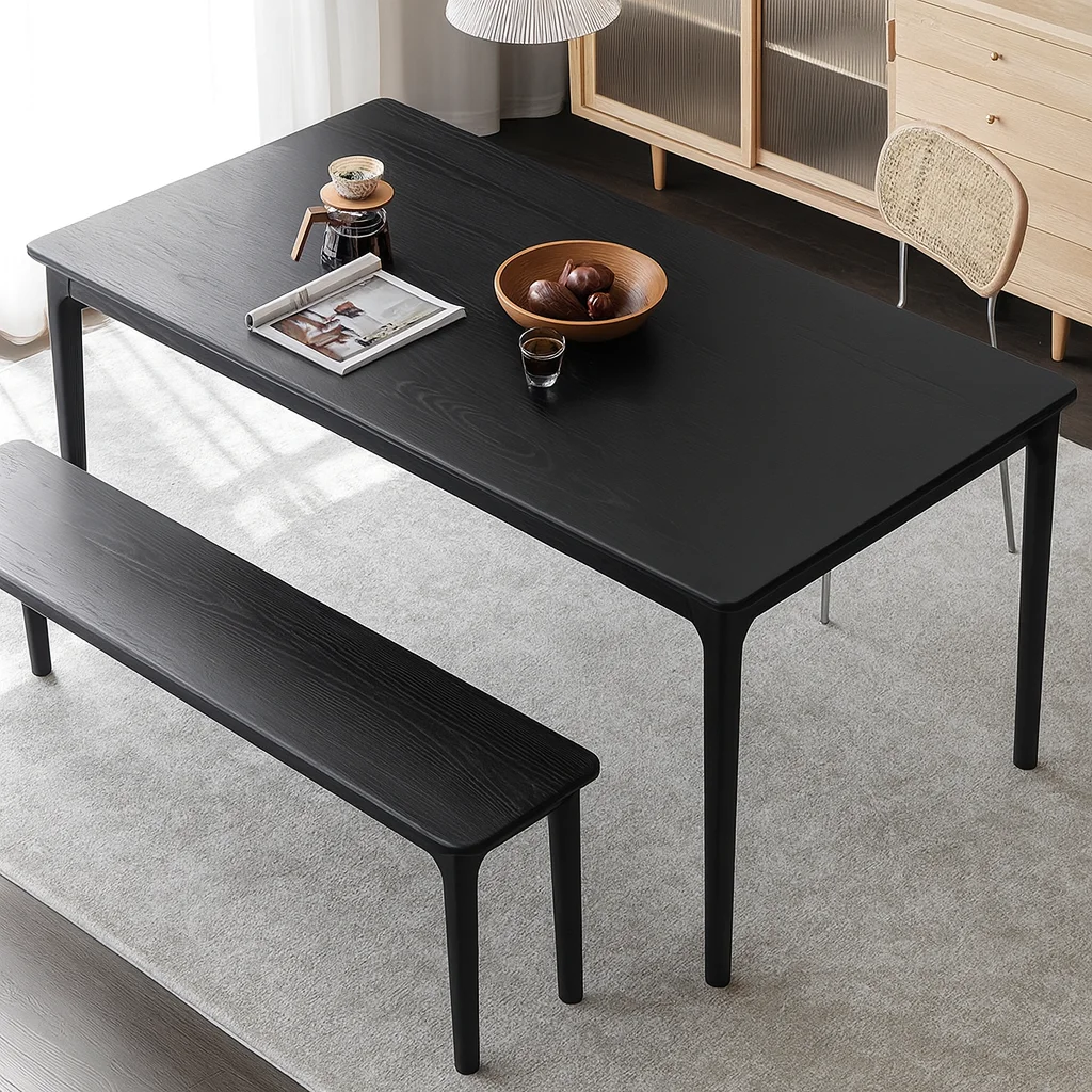 Стол GUAN — воплощение минималистичной строгости с восточной точностью пропорций. Прямые линии и тонкий профиль подчёркивают графичность силуэта, а глубокий чёрный оттенок массива дуба придаёт предмету благородную выразительность. Пропитанный маслом воск оставляет на поверхности мягкий матовый блеск, сохраняющий естественную текстуру древесины. Этот стол гармонично объединяет современную эстетику и ремесленное совершенство, создавая атмосферу тишины и концентрации.