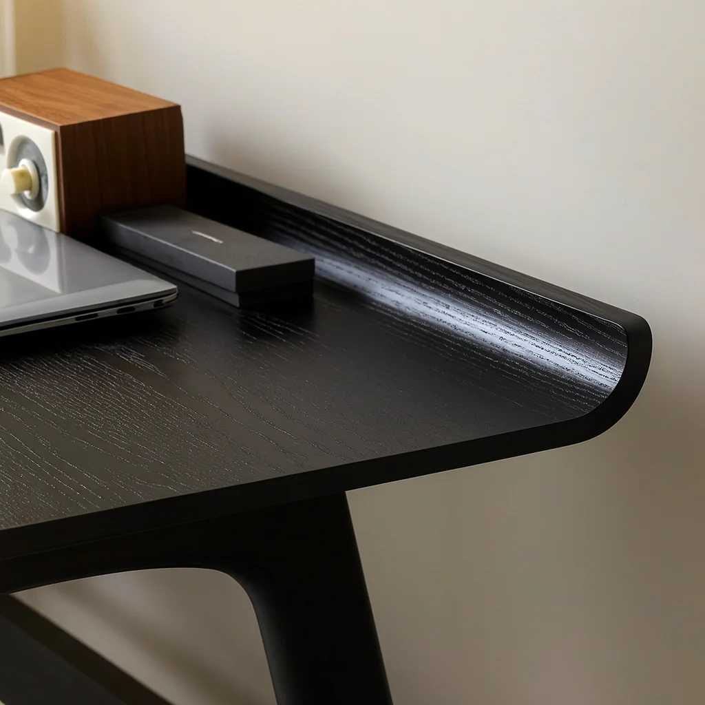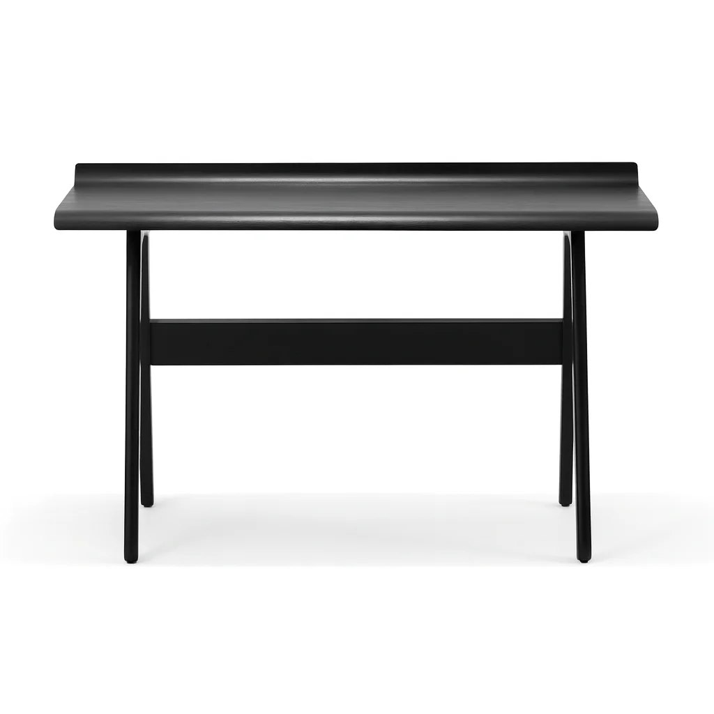 Стол REVA сочетает лёгкость современного силуэта и утончённую теплоту натурального дерева. Мягкий изгиб столешницы придаёт конструкции визуальную плавность, а аккуратная перекладина подчеркивает архитектурный баланс формы. Модель представлена в двух вариантах: глубокий чёрный с оттенком графита и тёплый орех с живой древесной текстурой. Лаконичный и функциональный, этот стол идеально подойдёт для рабочего пространства или творческой студии, добавляя интерьеру ощущение спокойной сосредоточенности.