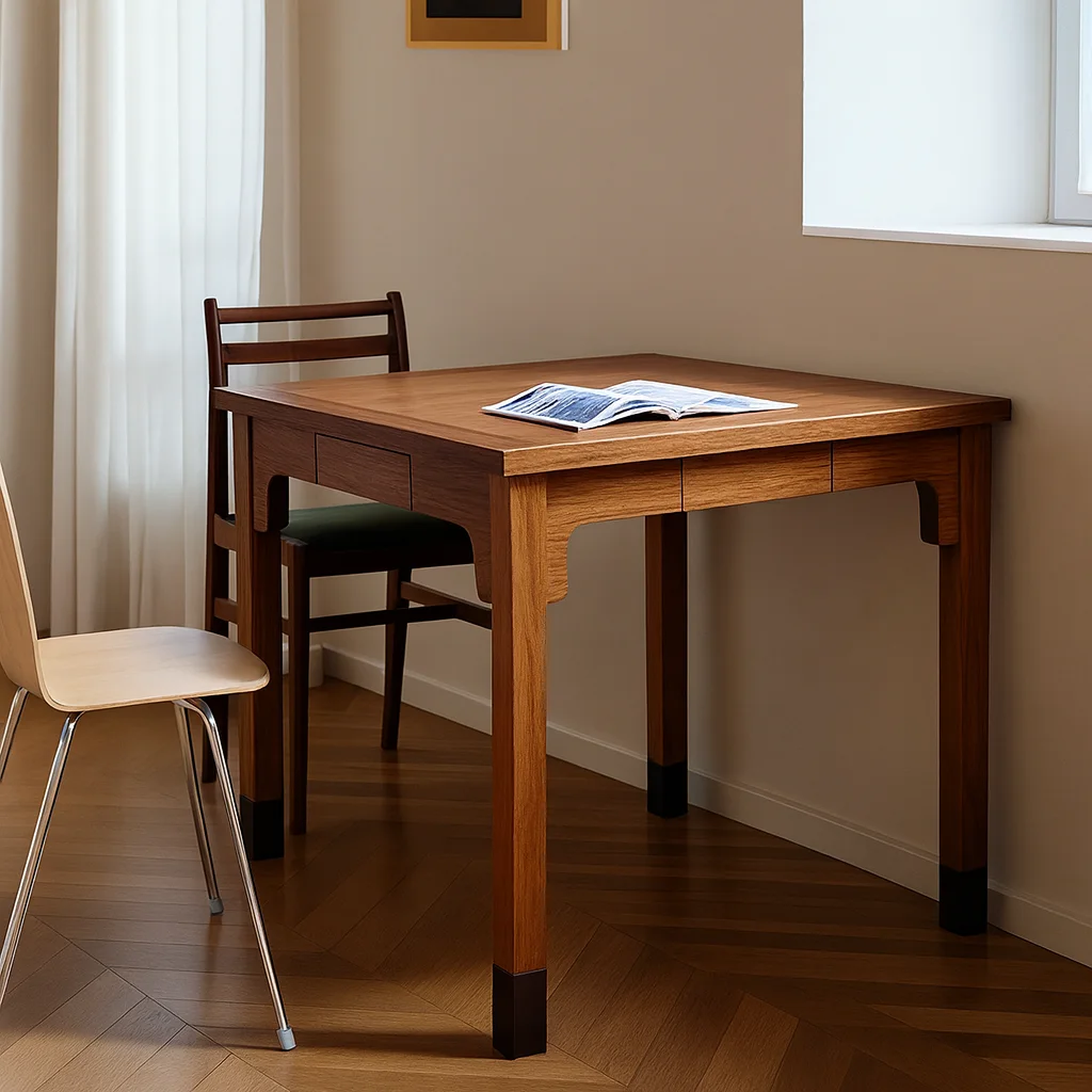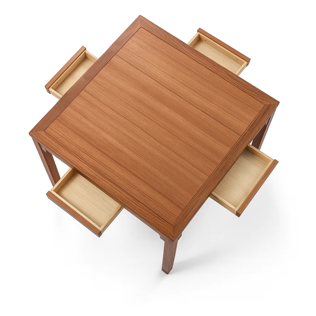 Стол MOKA сочетает классическую строгость формы с современным вниманием к деталям. Его лаконичная конструкция подчёркнута тёплой текстурой розового дерева, а чёткие линии придают облику архитектурную ясность. Вариант с инкрустацией из чёрной каменной плиты добавляет контраст и глубину, превращая поверхность в выразительный акцент. Стол выглядит основательно и утончённо одновременно, создавая атмосферу уюта и уверенности в пространстве.