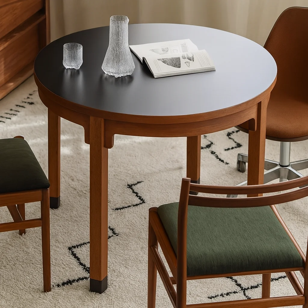 Коллекция MOKA MOON объединяет круглый и полукруглый варианты стола, предлагая гибкость и выразительность в лаконичной форме. Мягкая округлость столешницы уравновешена чёткой геометрией ножек, выполненных из тёплого розового дерева. Вариант с каменной вставкой добавляет визуальной глубины и современного звучания, а точная пропорциональность придаёт конструкции утончённую уравновешенность. Полукруглая версия может использоваться как приставной или консольный элемент, формируя модульную композицию.