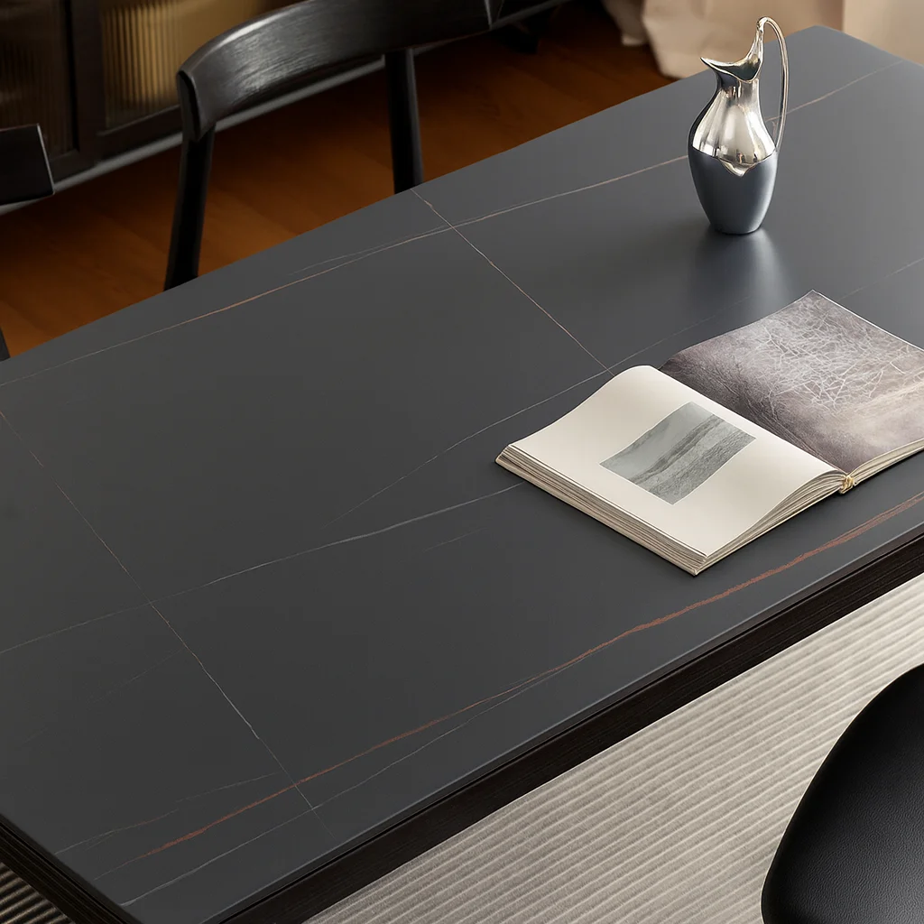 Обеденный стол YUEYAN STONE — это современная интерпретация минимализма в его самой чистой форме. Простая геометрия, утончённые линии и сбалансированные пропорции делают его универсальным элементом пространства. Холодная каменная поверхность придаёт образу визуальную лёгкость и монолитную прочность, а каркас из массива натурального дерева создаёт тёплый контраст. Светлый вариант сочетает белую каменную столешницу с тоном натурального бука, в то время как чёрный — строгий и выразительный, с глубокой фактурой красного дуба.