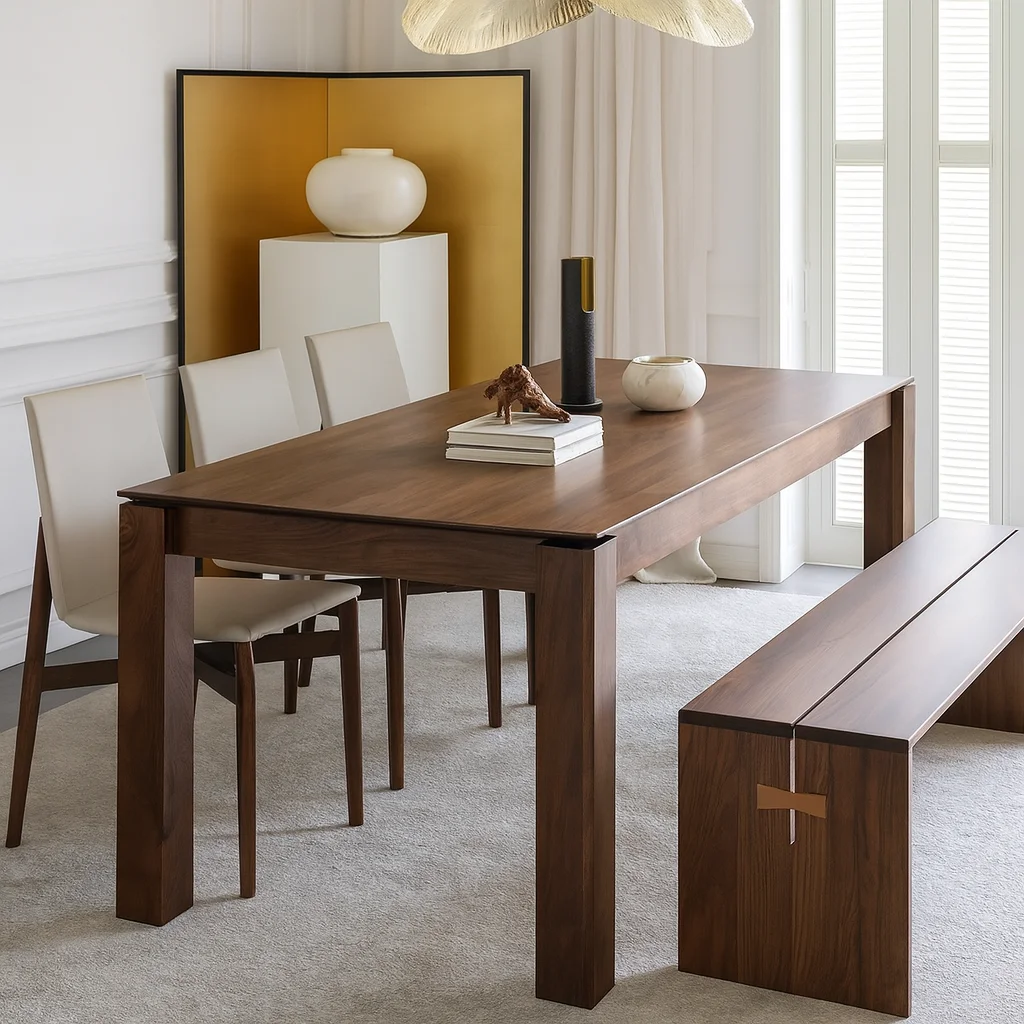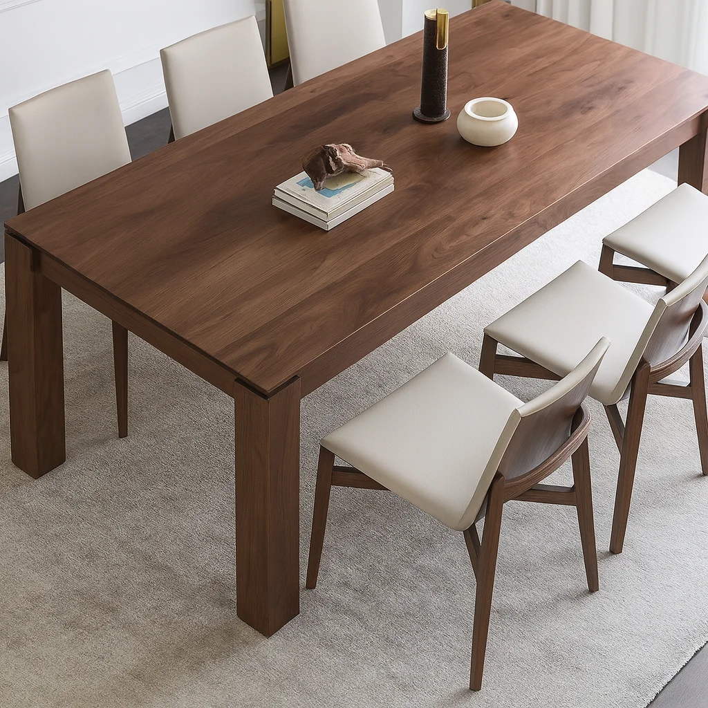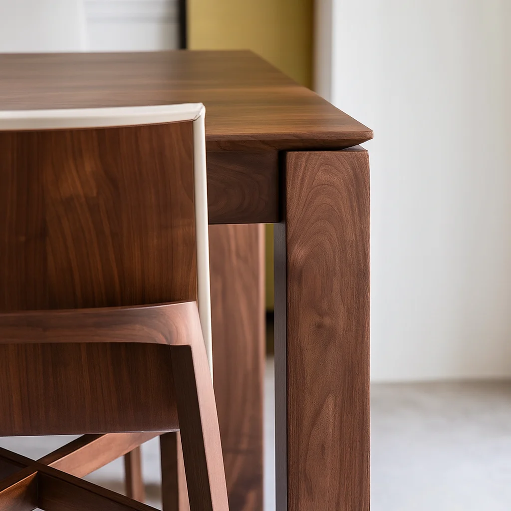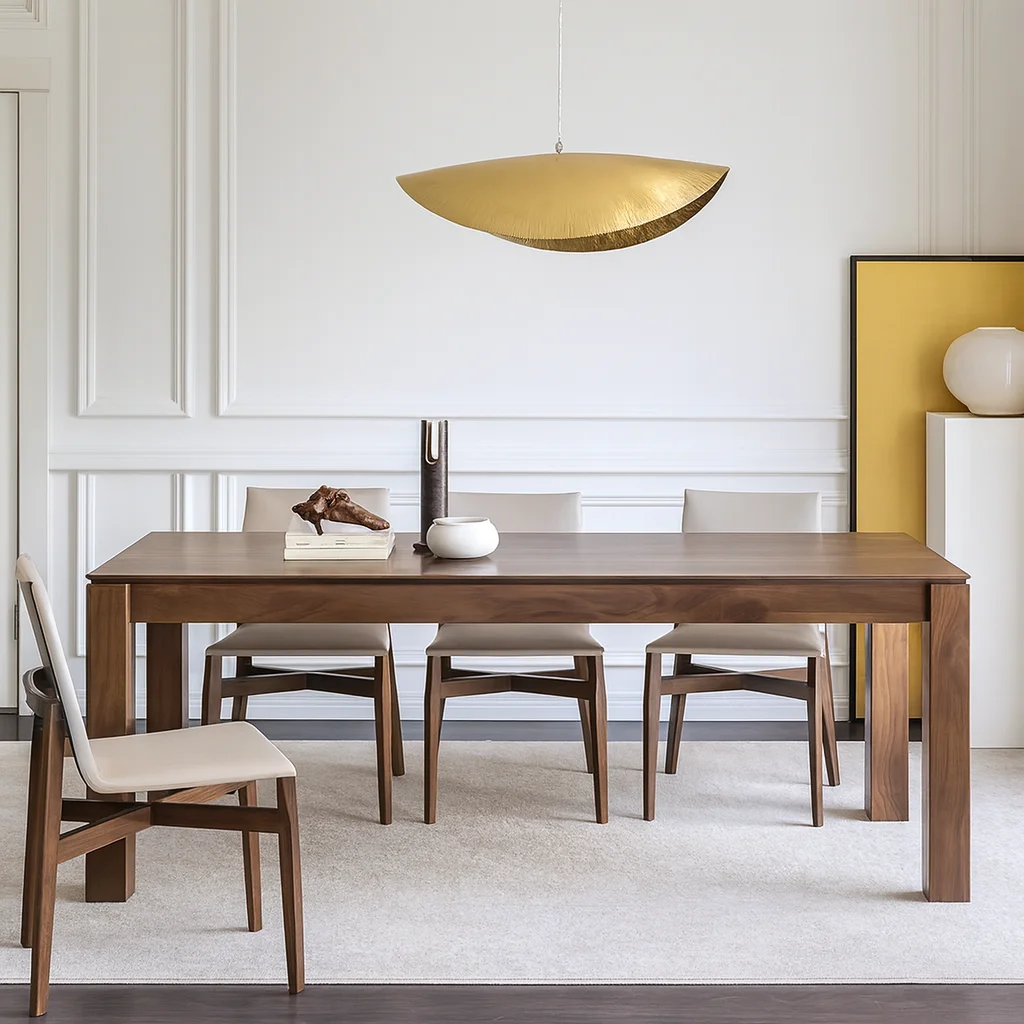 Стол MANDAO — это воплощение чистой природной эстетики в массиве североамериканского ореха. Чёткая прямоугольная форма подчеркивает структуру древесины и демонстрирует её природную глубину. Толстая столешница и мощные ножки создают ощущение монолитности, но благодаря продуманным пропорциям стол выглядит лёгким и современным. Его лаконичный силуэт органично сочетается с различными стилями интерьера — от минимализма до тёплой скандинавской классики.