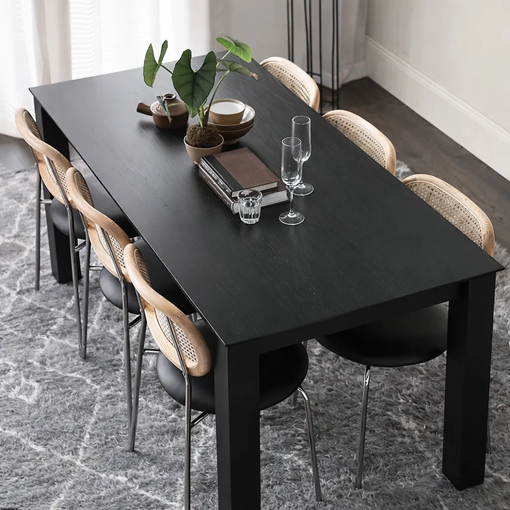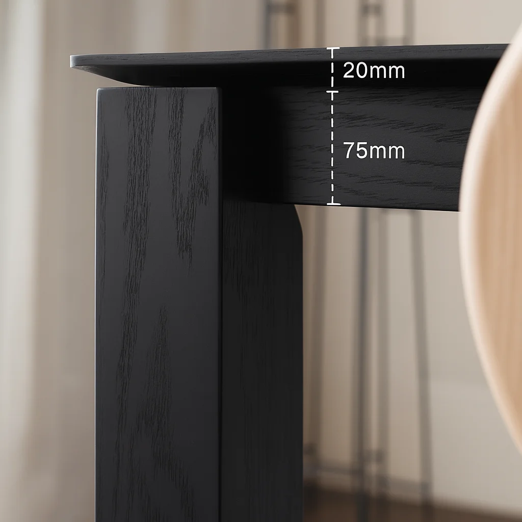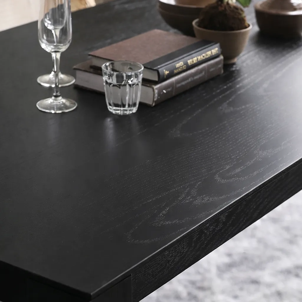 Прямолинейный, уверенный и лаконичный — стол KL04 воплощает силу простоты. Его строгие очертания и плотная структура древесины создают ощущение устойчивости и основательности. Матовое чёрное покрытие подчёркивает текстуру дуба и придаёт поверхности благородную глубину.