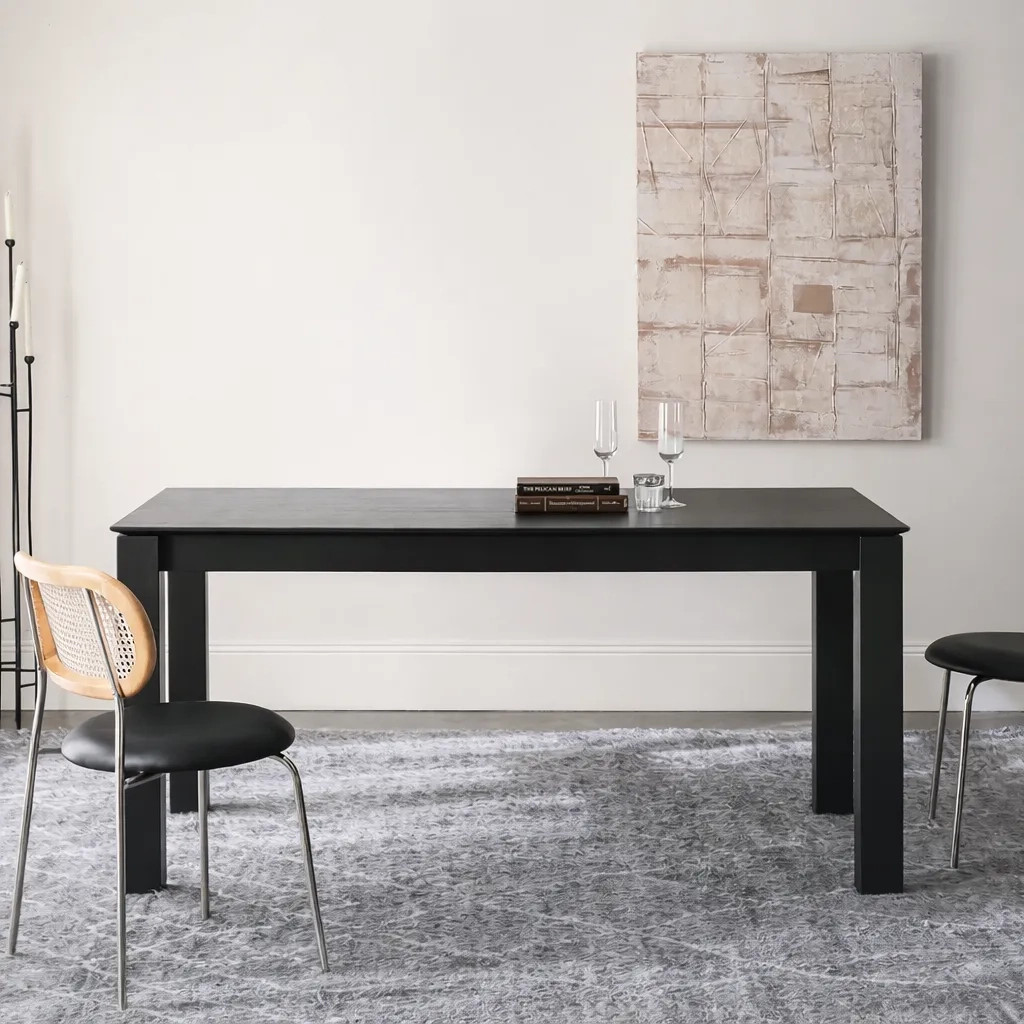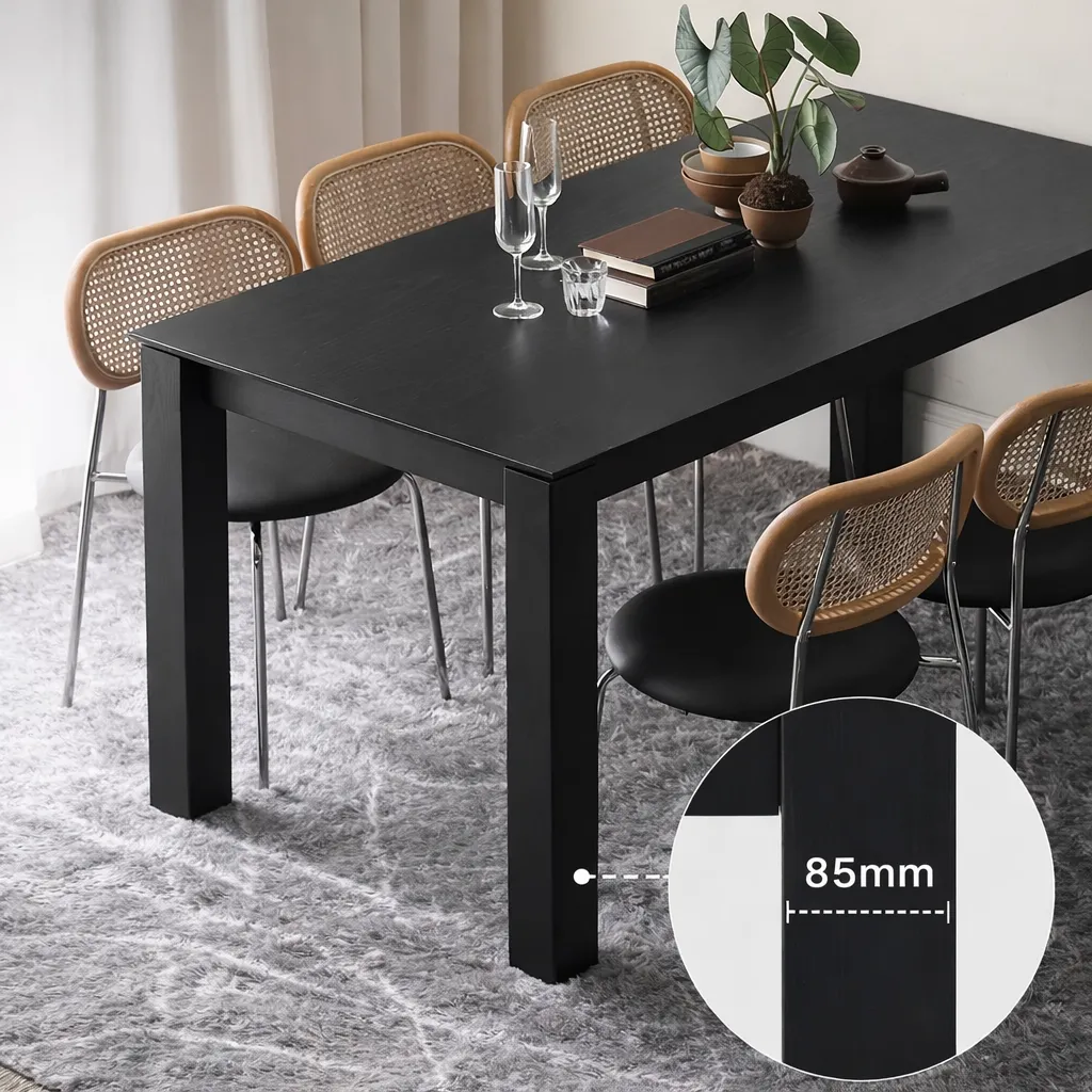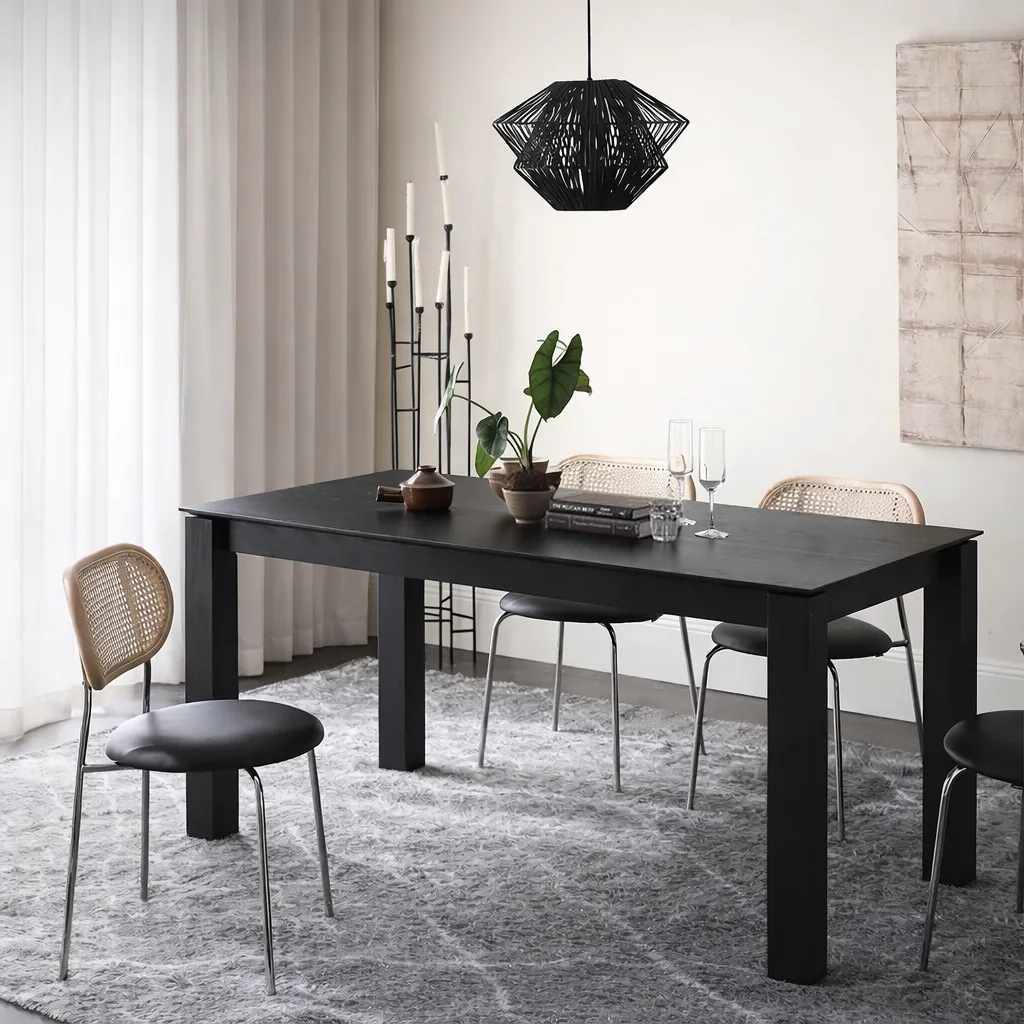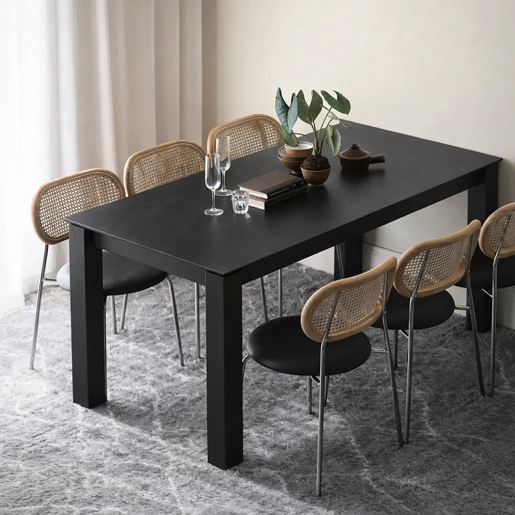 Прямолинейный, уверенный и лаконичный — стол KL04 воплощает силу простоты. Его строгие очертания и плотная структура древесины создают ощущение устойчивости и основательности. Матовое чёрное покрытие подчёркивает текстуру дуба и придаёт поверхности благородную глубину.