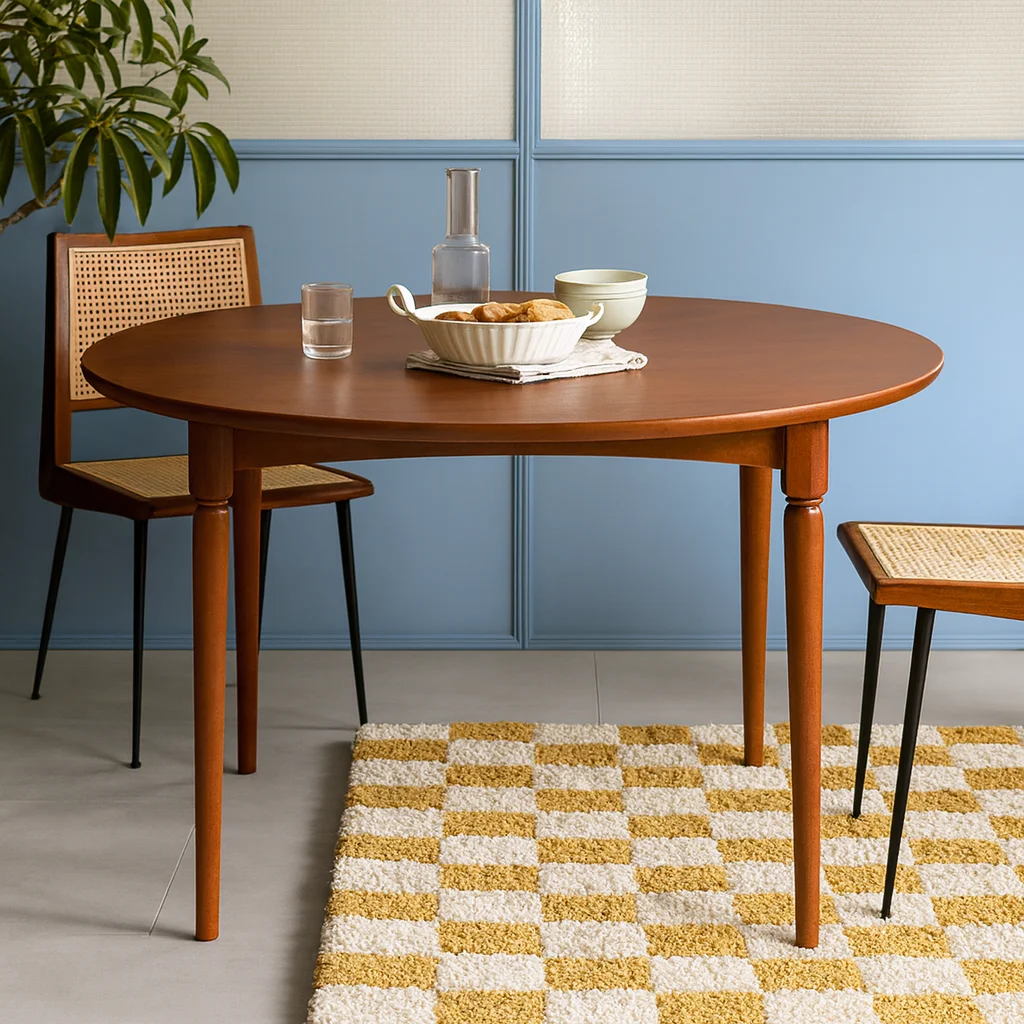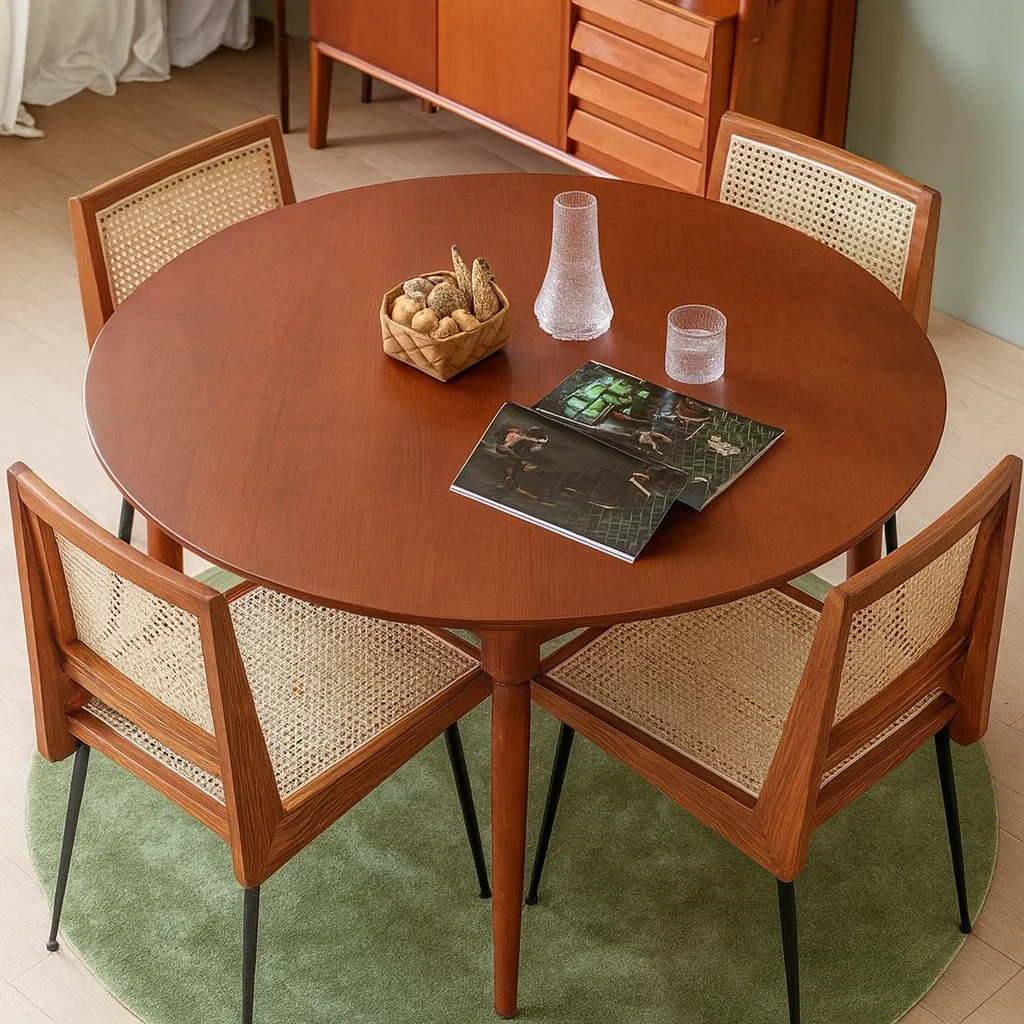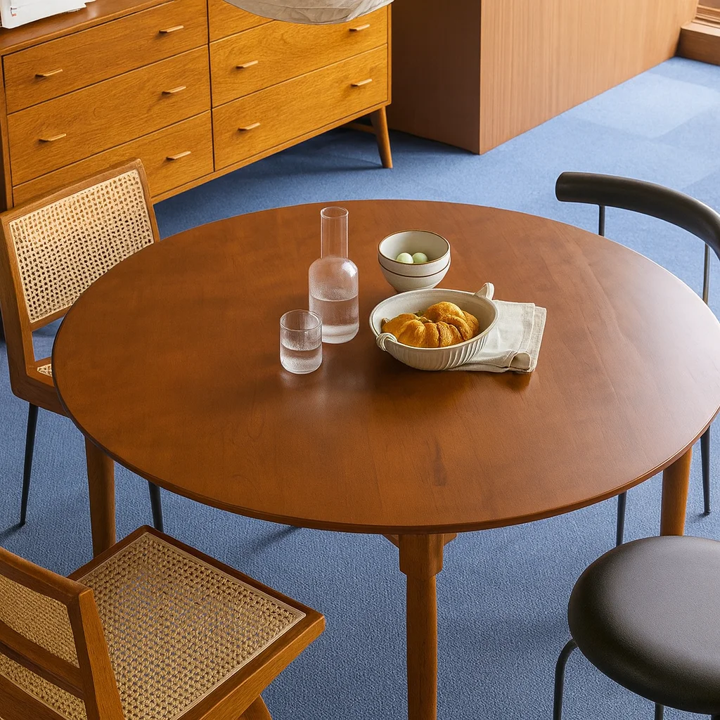 Стол KELING в духе неоклассики сочетает элегантность формы и теплоту натуральной древесины. Мягкий блеск вишнёвого массива подчёркивает плавные линии, а точёные ножки придают изысканность и лёгкость силуэту. Идеален для камерных обеденных зон и уютных интерьеров.