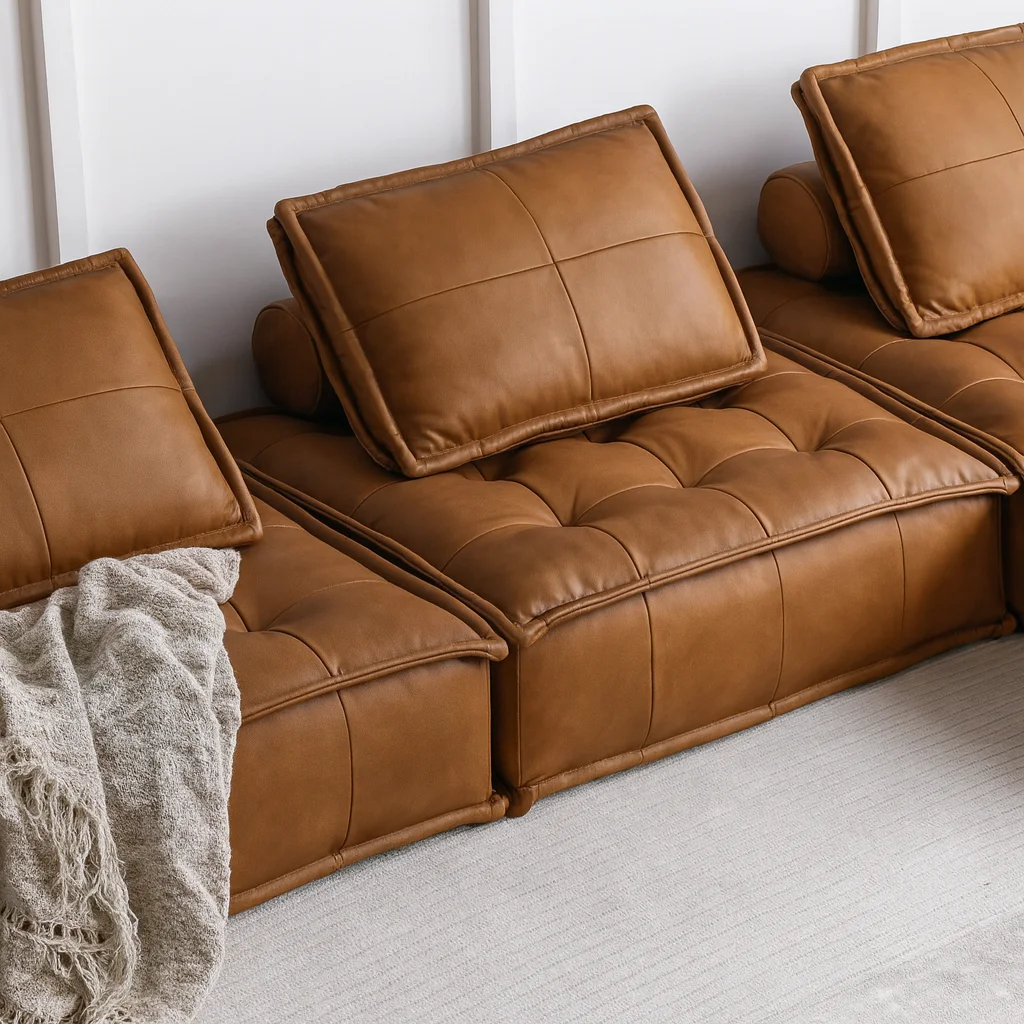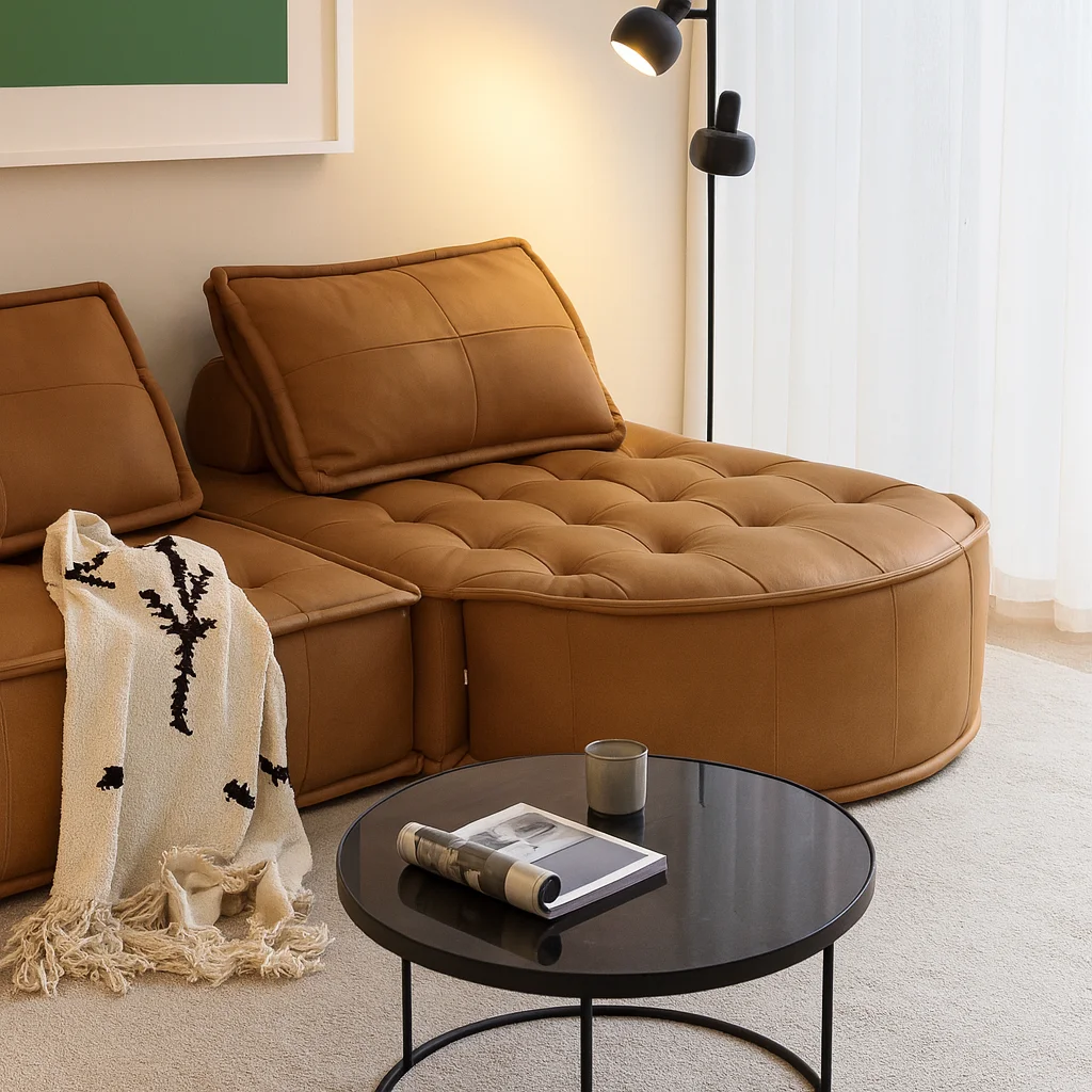 Модульный диван PIGMONTE от ASIADES создан для максимального комфорта и мягкости. Объёмные формы и выразительные прострочки подчёркивают уют, а натуральная кожа придаёт изделию благородный характер. Лаконичный силуэт и продуманная посадка делают его универсальным элементом современного интерьера.