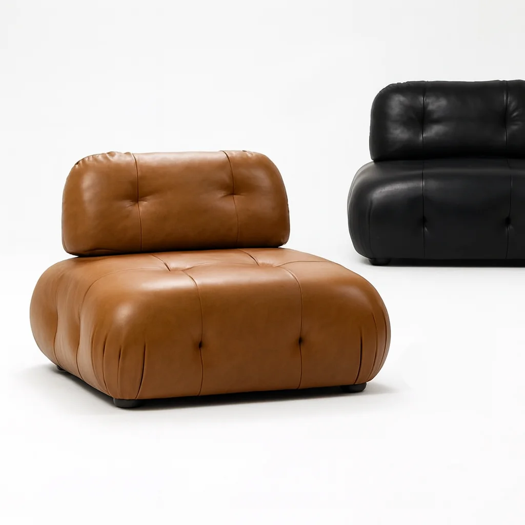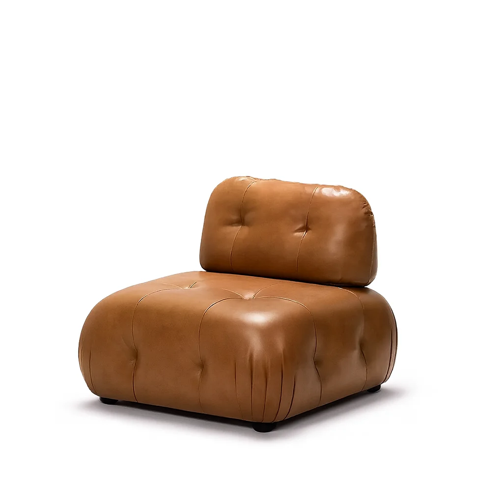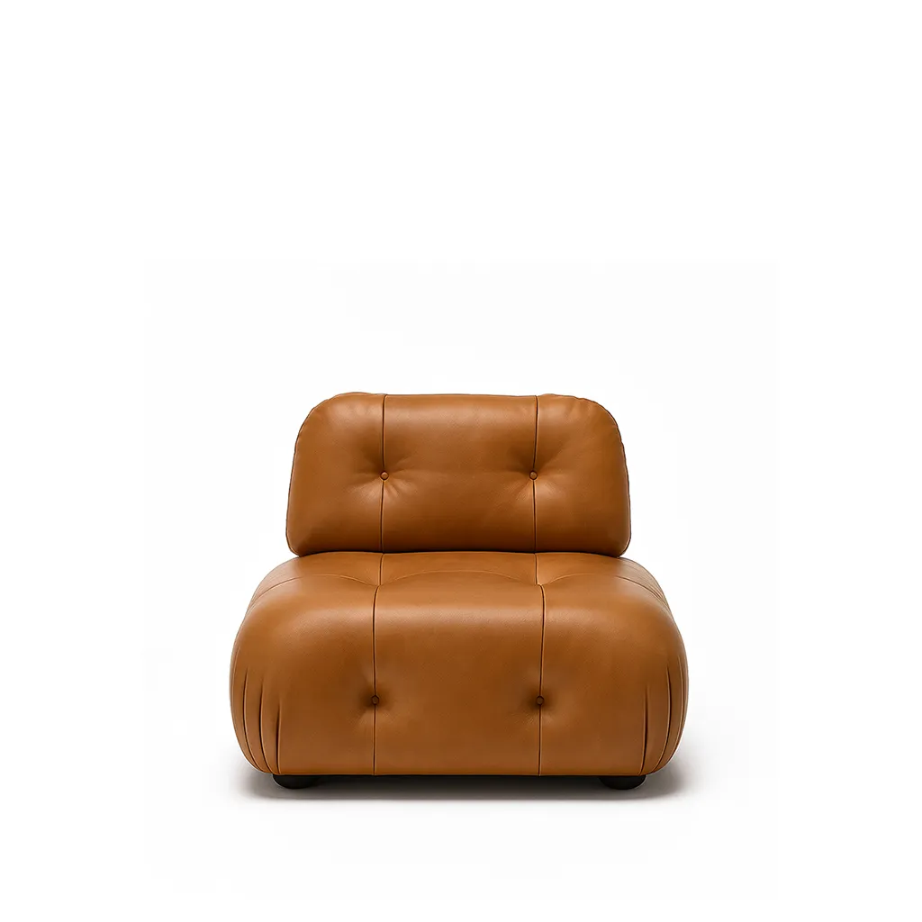 Модульный диван «CHLOE» воплощает мягкую монументальность и уют. Объёмная форма с глубокими утяжками и гладкой кожей создаёт ощущение уюта и защищённости. Лаконичная геометрия подчёркивает премиальную фактуру натуральной кожи и делает этот модуль самостоятельным акцентом в интерьере.