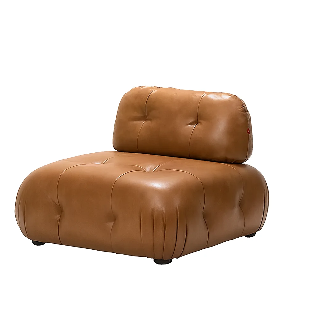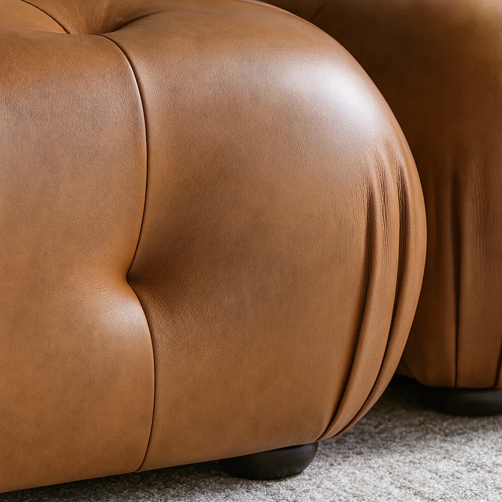 Модульный диван «CHLOE» воплощает мягкую монументальность и уют. Объёмная форма с глубокими утяжками и гладкой кожей создаёт ощущение уюта и защищённости. Лаконичная геометрия подчёркивает премиальную фактуру натуральной кожи и делает этот модуль самостоятельным акцентом в интерьере.