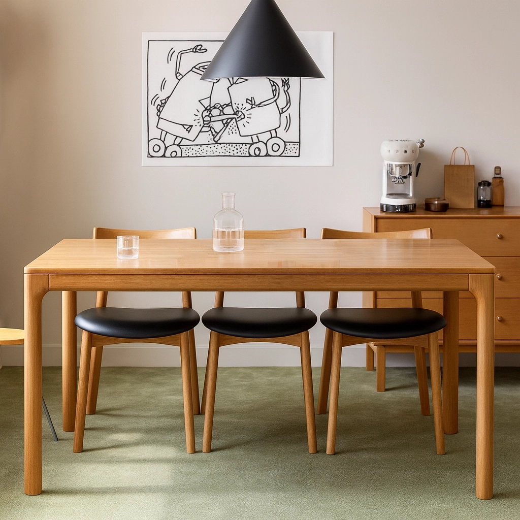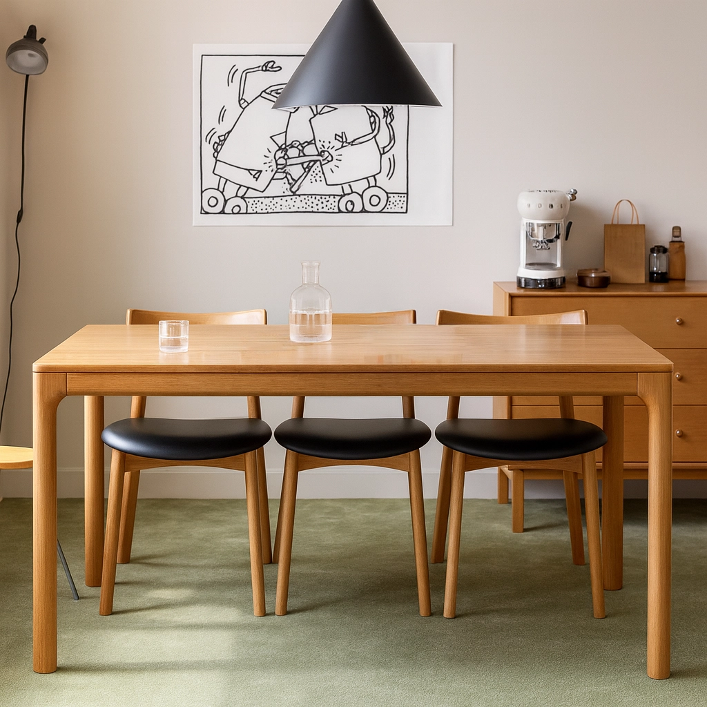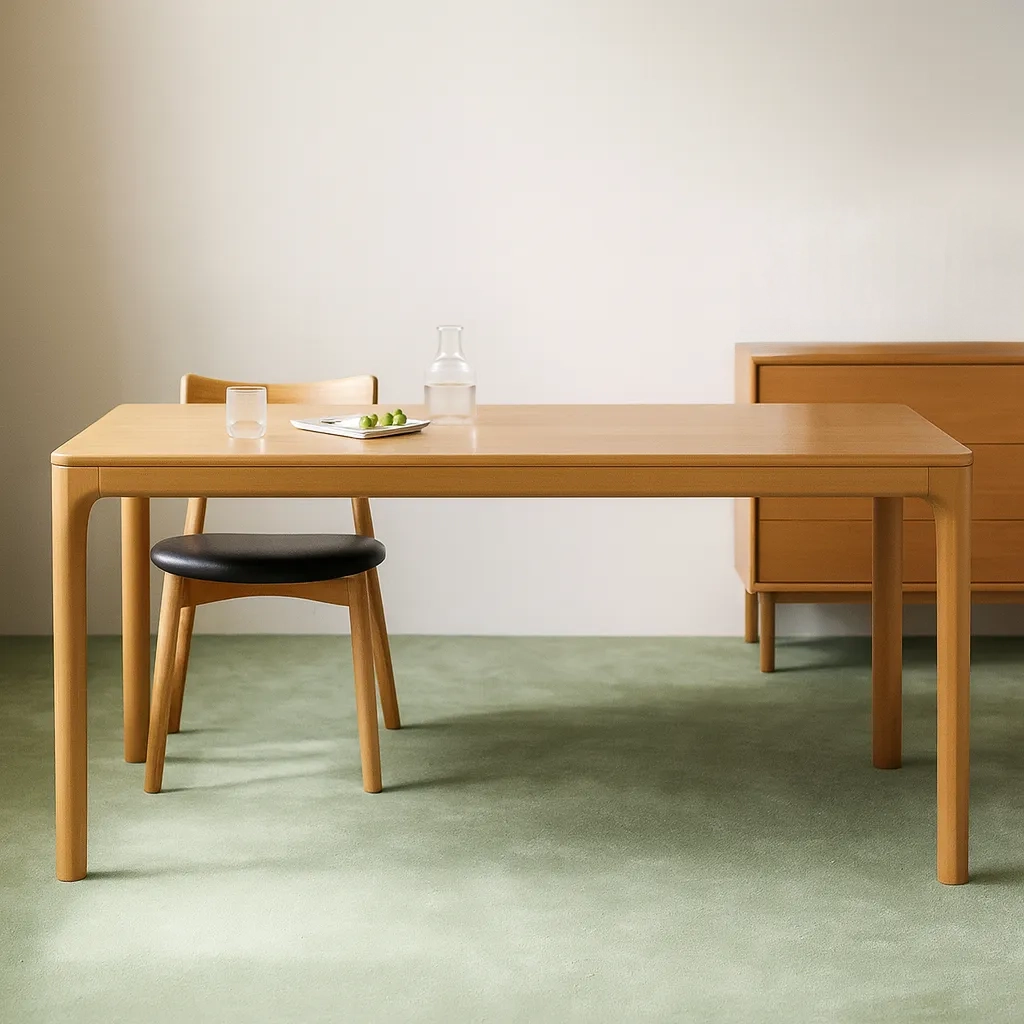 Стол YUEYAN сочетает минимализм и мягкую пластику форм. Его плавные углы и сдержанный силуэт подчеркивают природную красоту массива ясеня. Поверхность, отполированная до шелковистого блеска, словно отражает мягкий свет, создавая атмосферу уюта и естественной гармонии.