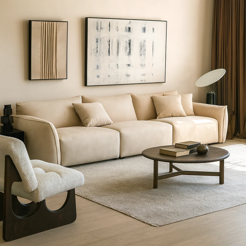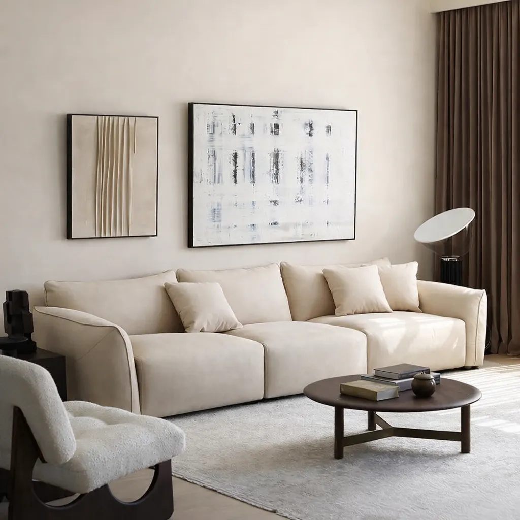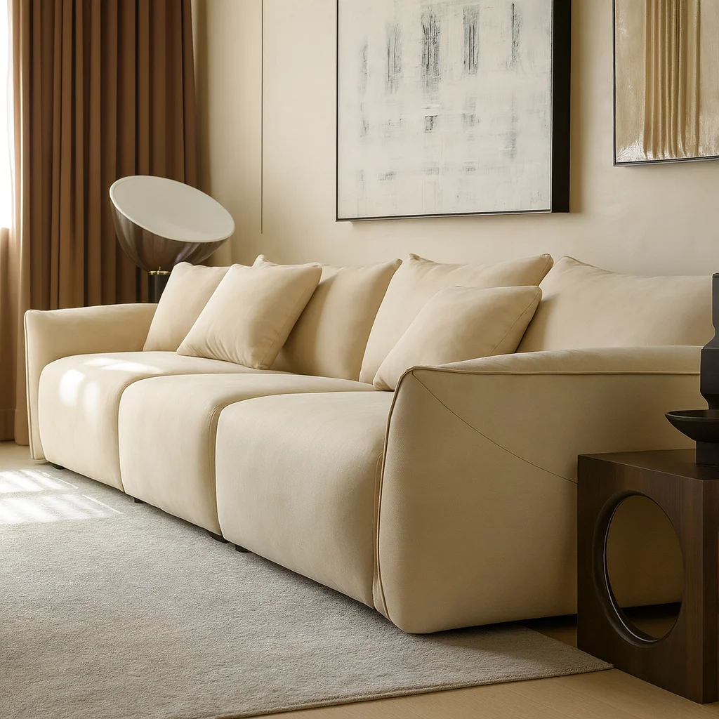 Диван ANC — воплощение мягкой минималистичной эстетики. Его плавные линии и объёмные формы создают атмосферу покоя и уюта, а нейтральные оттенки подчёркивают современный характер модели. Глубокое сиденье и мягкие подушки обеспечивают комфорт, сохраняя при этом чёткую архитектуру силуэта.