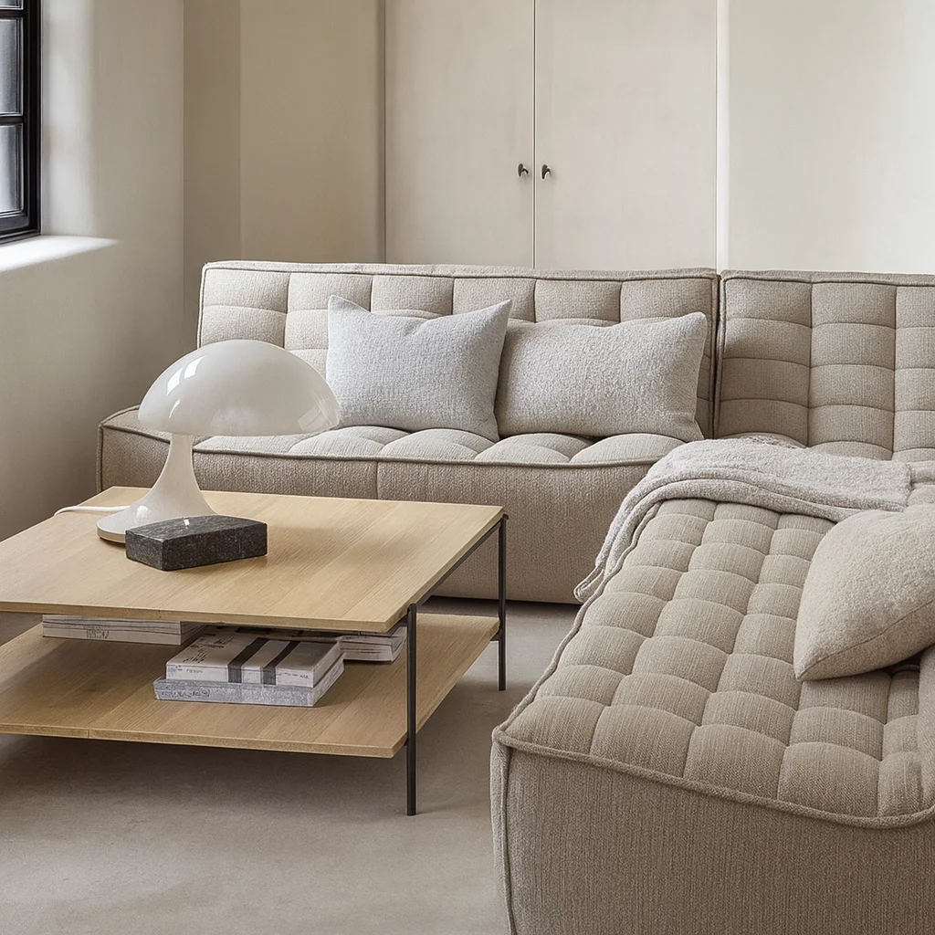 Лаконичная форма и мягкий объем создают ощущение спокойствия и уравновешенности. Сложная геометрия простёжки придаёт композиции глубину, а плавные изгибы визуально смягчают строгий силуэт. Поверхность из плотной ткани с лёгким матовым блеском делает изделие особенно уютным в любом пространстве — от строгого современного до тёплого камерного.