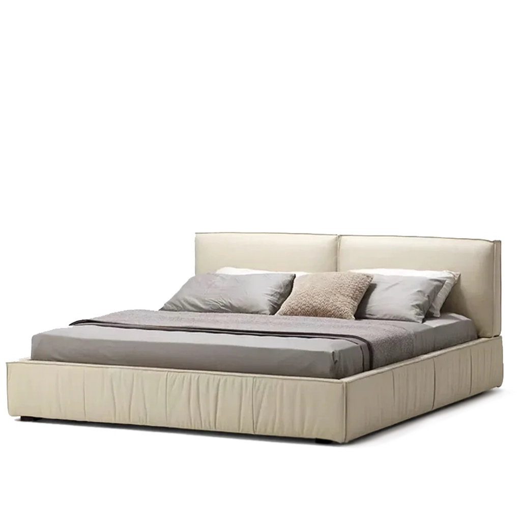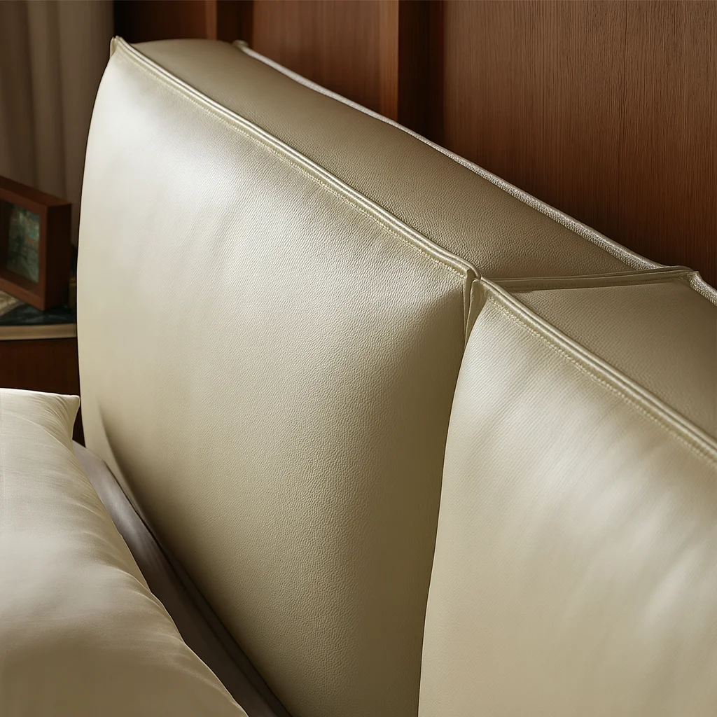 Данная кровать — это гармония натуральных материалов и современного дизайна. Обивка из натуральной кожи создаёт ощущение уюта и премиальности, а мягкое наполнение с эластичной пеной, хлопковым волокном и пером обеспечивает комфорт при отдыхе. Каркас выполнен из сосны и экологичной многослойной древесины, что гарантирует прочность и стабильность конструкции. Основание усилено панелями и отделкой из технологичного шпона, а ножки из каучукового дерева придают кровати естественный и тёплый характер.