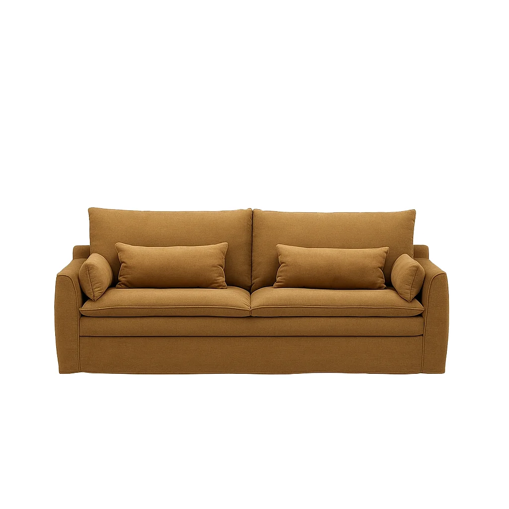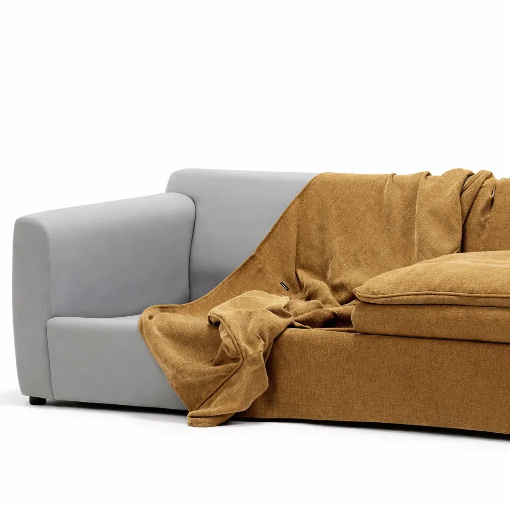 Мягкие линии и глубокие подушки создают ощущение расслабленного покоя, будто облако приняло форму предмета. Лёгкая небрежность складок придаёт естественность, а тканевая текстура с матовым светопоглощением добавляет уют и теплоту. Всё в этом образе говорит о домашнем комфорте, свободе и безмятежности.