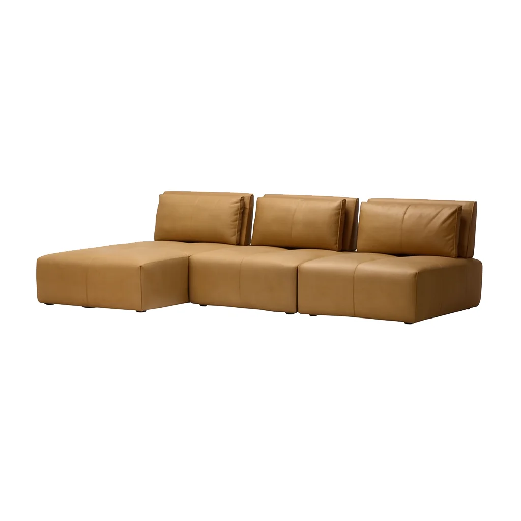 Чёткая геометрия и массивные пропорции сочетаются с мягкостью кожи, создавая образ современного уюта с индустриальным оттенком. Плавно изогнутая спинка и крупные сиденья формируют ощущение монолитного комфорта. Поверхность из натуральной кожи со временем приобретает благородный матовый блеск, добавляя изделию характер и глубину.