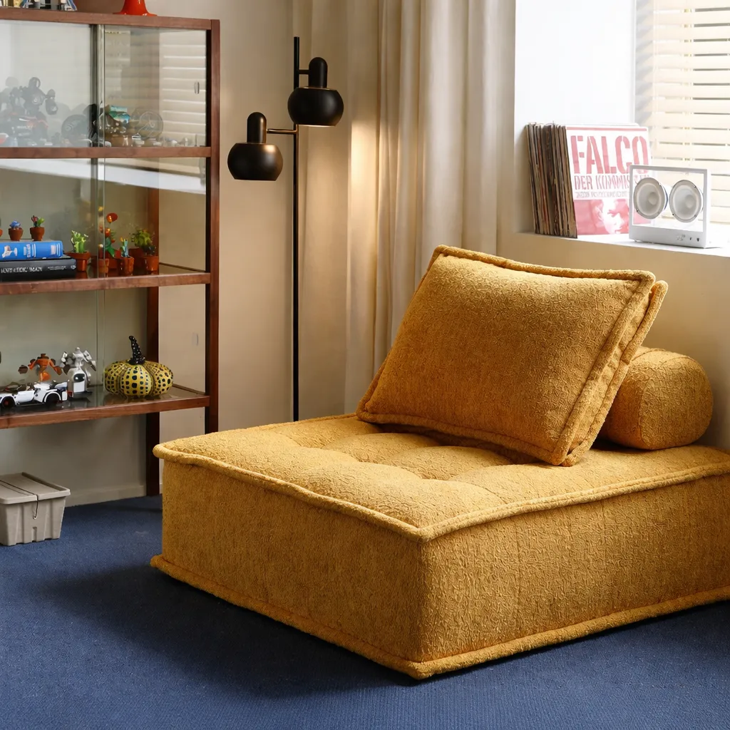 Лаконичные пропорции и мягкая, почти матовая фактура придают этой форме естественность и тактильную теплоту. Плотная простёжка создаёт лёгкий ритм поверхности, а широкие подушки делают образ монолитным и при этом уютным. В нём ощущается продуманная простота — без излишеств, но с глубиной и характером.