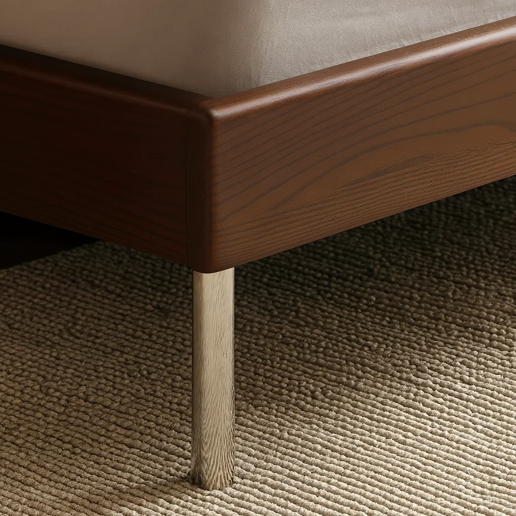 Эта кровать объединяет премиальные материалы и современный минимализм. Изголовье выполнено из натуральной кожи с мягким наполнением из морской и шелковой ваты, создающим комфорт и уют. Каркас сочетает прочную сосну, многослойную древесину и поддержку из красного каучукового дерева с металлическими элементами. Основание дополнено многослойной древесиной с противоскользящим покрытием, обеспечивая надежность и долговечность.